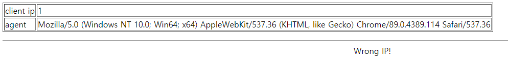Wrong IP!라는 메시지와 함께 테이블이 보인다.