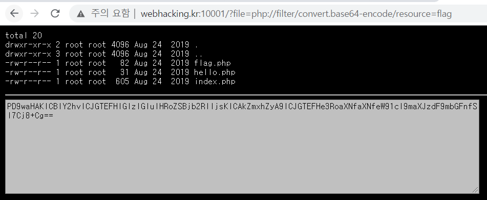 php://filter를 사용하면 대상이 되는 파일의 내용을 decode 혹은 encode 하여 보여준다.
