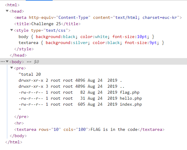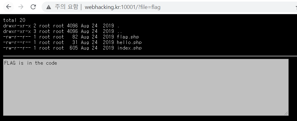 index 파일에는 별다른 내용이 없었고 flag 파일의 내용을 보았더니 FLAG is in the code이라고 출력되었다.