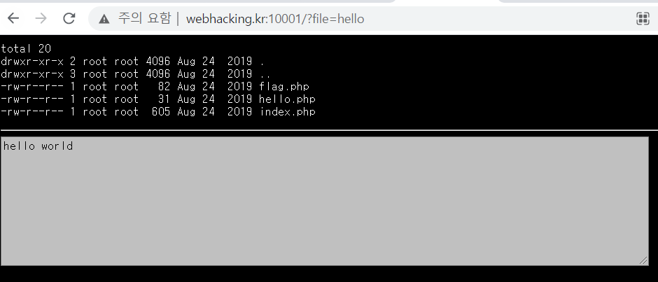 url을 보니 ?file=hello가 보내지는 걸 볼 수 있고, 파일 이름인 것 같아서 flag와 index를 추가로 입력해보았다.