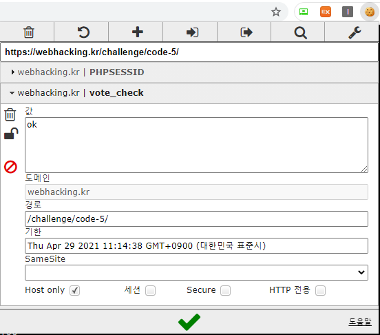 쿠키를 살펴보니 vote_check라는 쿠키값이 있는 것을 알 수 있다.