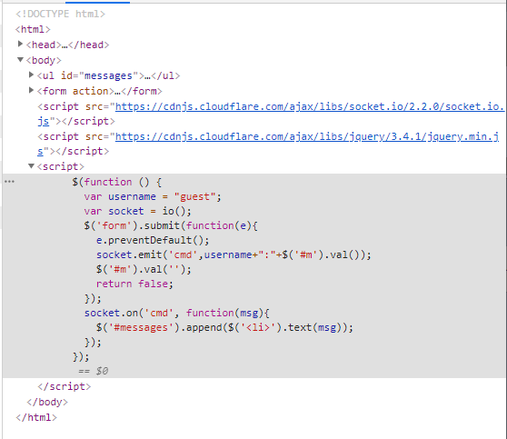 socket = io()를 통해 새로운 소켓을 생성해주고, emit()을 통해 메시지를 보낸다.