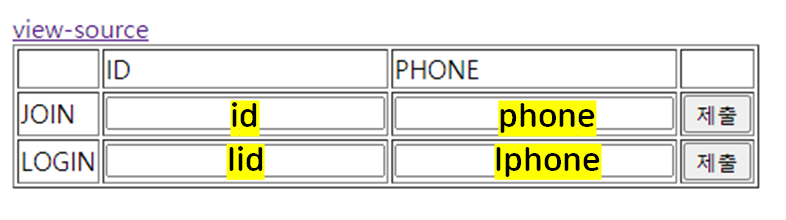 각각 칸의 name값은 위와 같다.