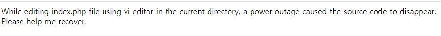 vi 편집기는 수정 시 swp 파일을 생성하기 때문에 이 파일을 이용하여 복구를 할 수 있다.