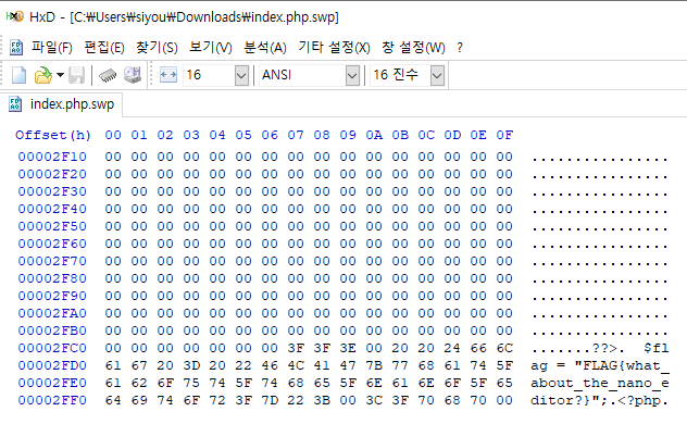 URL에 .index.php.swp을 입력하여 파일을 다운받자.