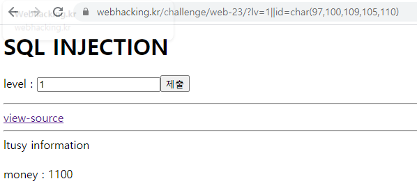 위의 메시지는 lv=1을 입력했을 때 나오는 메시지이다.
