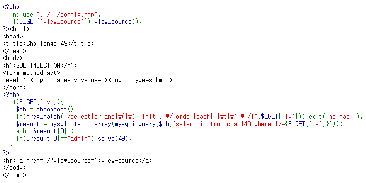 preg_match로 select, or, and (), limit, /, order, 탭, ', ", , 가 필터링 된다.